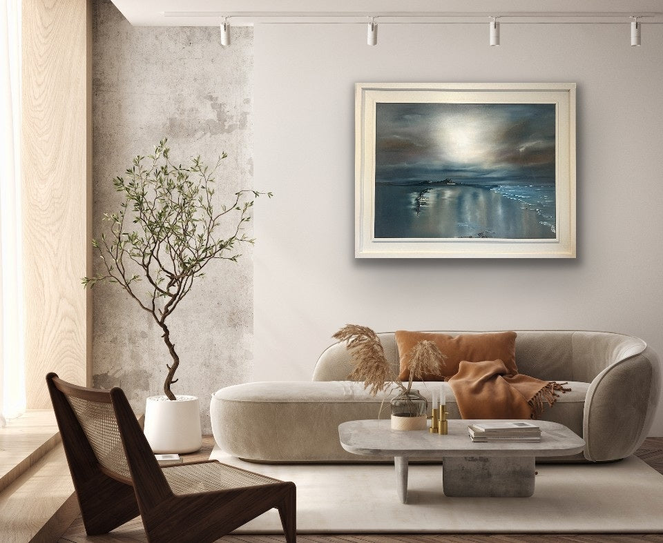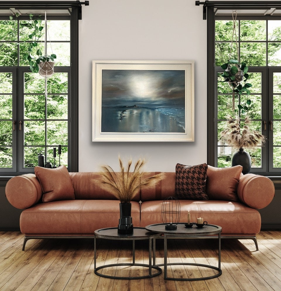 Whether placed in a living room, hallway, or reflective space, this original coastal painting brings a sense of stillness and depth to any home — a timeless reminder that light always returns.