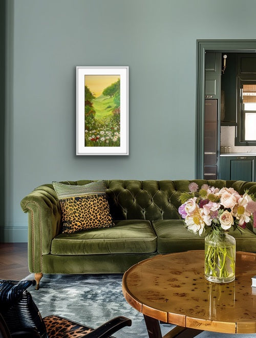 Inspired by the magic of Tolkien’s Middle-earth, Home Through the Shire is a richly atmospheric painting that invites you into a world of peace and welcome. It depicts a lush, winding path leading over the hill — a metaphorical journey toward rest, safety, and home. A beautiful piece for any space needing warmth and story.